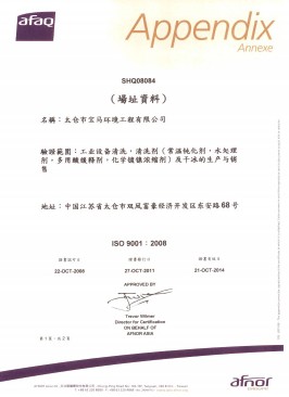 已經獲得最嚴格的法國AFAQ-EAQA ISO9001、ISO14001、OHSAS18001認證,取得電廠鍋爐化學清洗A級資質。